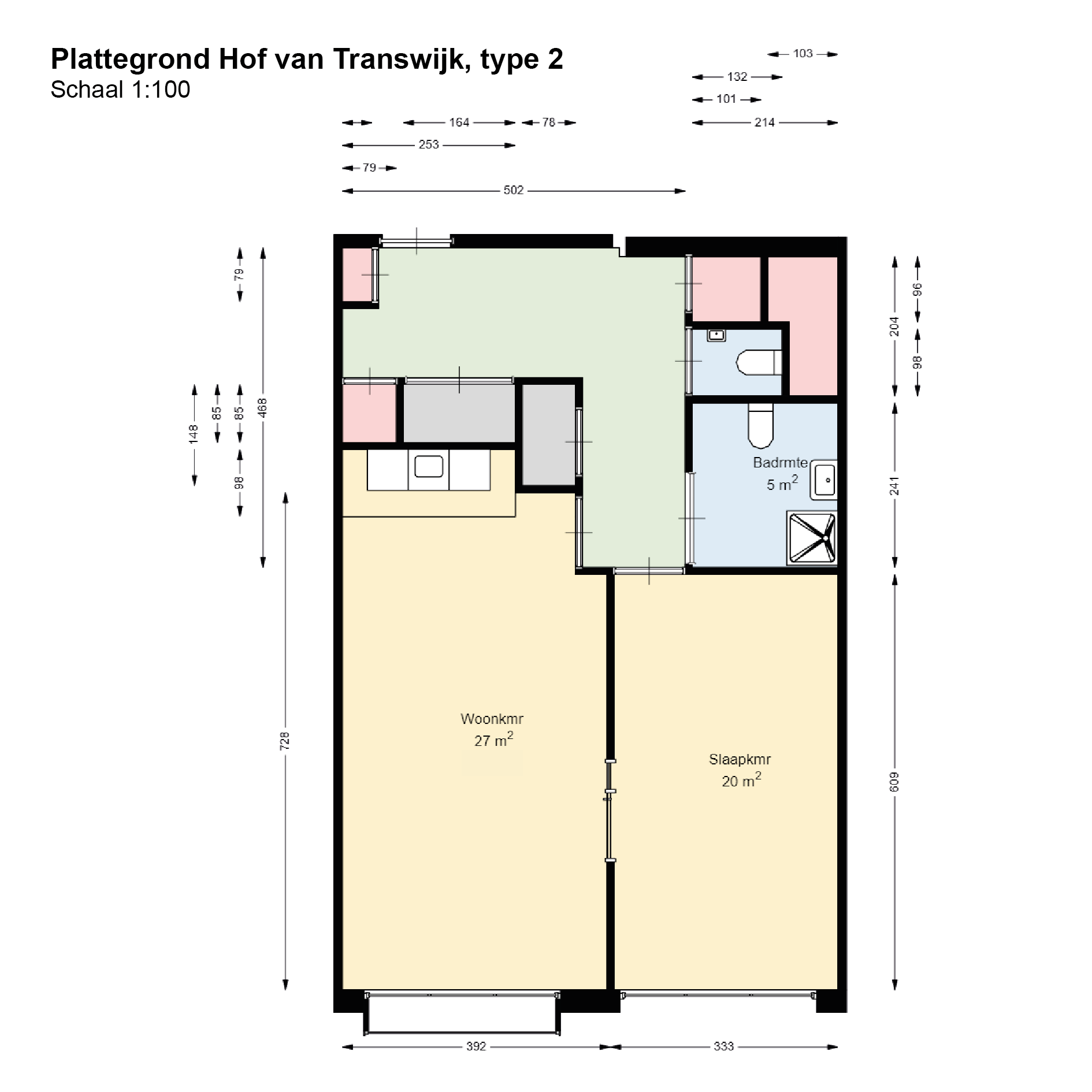 Dit is ook een tweekamerappartement, maar is iets kleiner dan type 1. Dit appartement is ongeveer 50 m2.